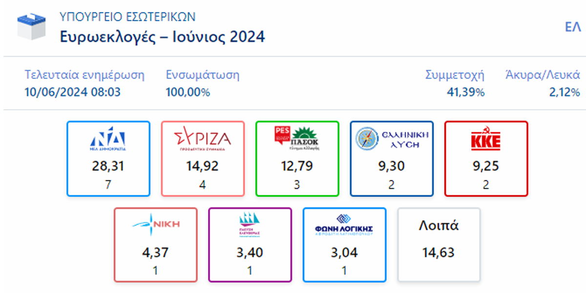 Ευρωεκλογές 2024: Τα τελικά αποτελέσματα – Ποιοι εκλέγονται