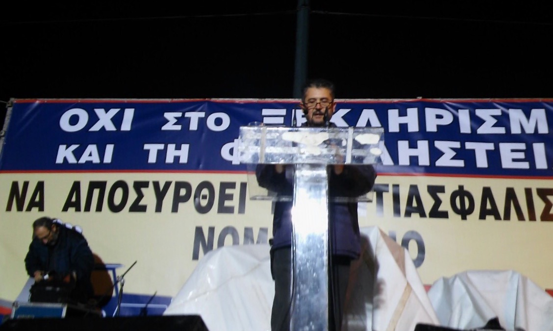 Πρώτο στο βάθρο των ομιλητών ανέβηκε ο Ρίζος Μαρούδας, ο οποίος έκανε λόγο για αγρότες που βρίσκονται παγιδευμένοι στον δρόμο και ακόμη δεν έχουν φτάσει στην Αθήνα, ενώ επισήμανε ότι οι ξεσηκωμένοι αγρότες είναι βιοπαλαιστές και όχι λαμόγια. «Παλεύουμε για να έχουμε ένα καλύτερο αύριο, γιατί με αυτά τα μέτρα δεν θα έχουμε ούτε σήμερα. Παλεύουμε για να μην μας πάρουν τα κτήματά μας, την γη μας», σημείωσε, τονίζοντας ότι με την δυναμική που αναπτύχθηκε όλο αυτό το διάστημα «μπορούμε να ασκήσουμε την μέγιστη πίεση στην κυβέρνηση». Επισήμανε δε, ότι δεν μπορούν να προσέλθουν σε έναν διάλογο, όπου θα ακούσουν λόγια συμπόνοιας και στο τέλος να γυρίσουν πίσω με σκυμμένο το κεφάλι. «Διάλογος θα υπάρχει μόνο όταν αποσυρθεί το ασφαλιστικό νομοσχέδιο», είπε.
