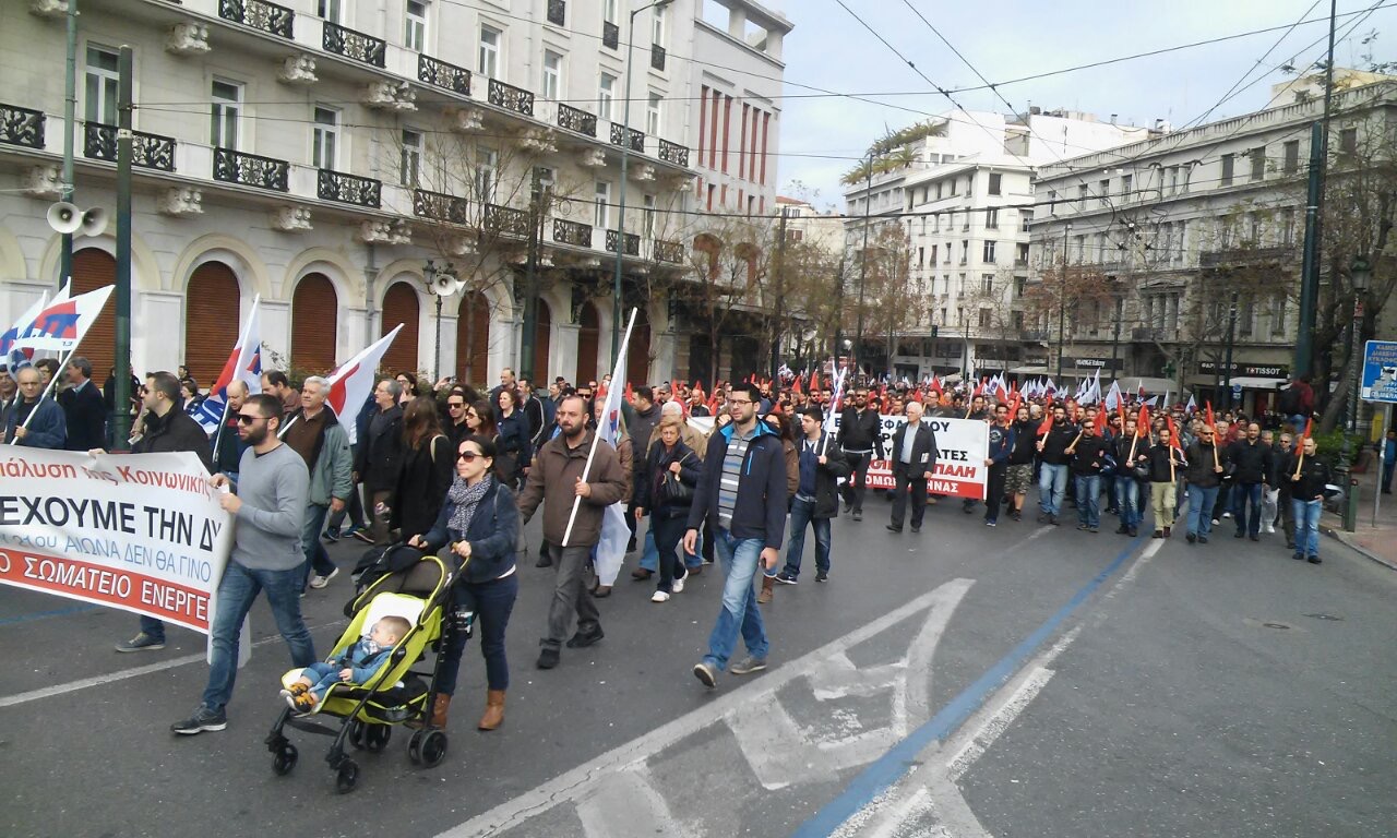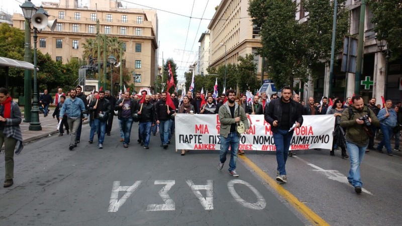 Το ΠΑΜΕ απαιτεί την απόσυρση του νόμου «λαιμητόμο» για το ασφαλιστικό προειδοποιώντας για «συνέχιση και κλιμάκωση των κινητοποιήσεων μέχρι τέλους». Στη συγκέντρωση βρίσκεται ο γενικός γραμματέας του ΚΚΕ, Δημήτρης Κουτσούμπας, ενώ το «παρών» δίνουν εργαζόμενοι από όλους τους κλάδους και συνταξιούχοι.