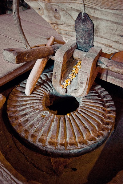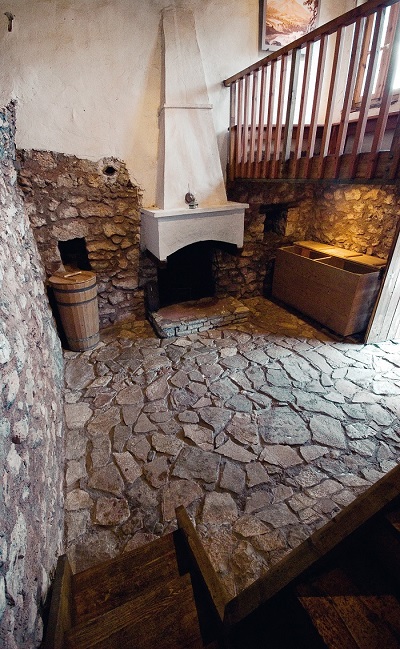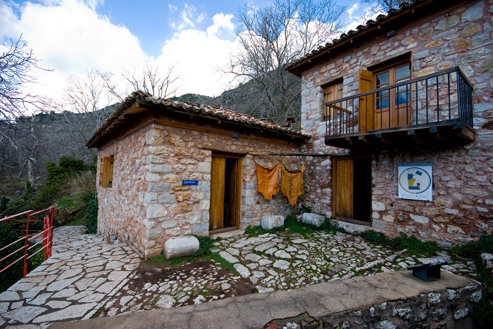 Στο πρώτο κτήριο συναντάμε μια νεροτριβή και έναν αλευρόμυλο. Στην περιοχή της Δημητσάνας, μέχρι τα μέσα του 20ού αιώνα, υπήρχαν περίπου 20 νεροτριβές, που χρησιμοποιούνταν για να πλένονται τα υφαντά. Η νεροτριβή ήταν τέχνη για την εποχή εκείνη και καλύτερος μάστορας θεωρείτο αυτός που ήξερε πόσο χρόνο πρέπει να αφήσει το ύφασμα στο νερό. Στον αναπαλαιωμένο αλευρόμυλο, ο επισκέπτης μπορεί να ρίξει σπόρους καλαμποκιού και να παρακολουθήσει τον τρόπο άλεσης και παρασκευής αλευριού, ενώ δίπλα το δωμάτιο με το τζάκι αποτελούσε τη μόνιμη κατοικία του αλευρά και της οικογένειάς του.