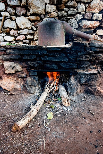 Η περιοχή έξω από τον μύλο, η οποία ήταν προστατευμένη με στέγαστρο, χρησίμευε για την προστασία του ρακοκάζανου, που στηνόταν εκεί για την παραγωγή του τσίπουρου.