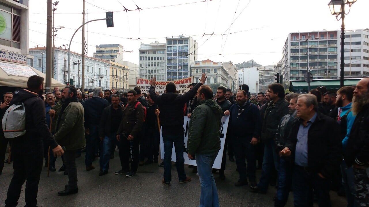 Προηγουμένως η πορεία με τους 2.000 περίπου διαδηλωτές σταμάτησε στην οδό Μάρνης αφού όπως πληροφορήθηκαν οι αστυνομία σταμάτησε στην Πλατεία Καραϊσκάκη το φορτηγάκι με τα αγροτικά προϊόντα που τους συνόδευε. «Δεν πάμε στο Υπουργείο αν δεν αφήσουν τους συναδέλφους μας με το αγροτικό να μας ακολουθήσουν», διεμήνυαν στους αστυνομικούς.