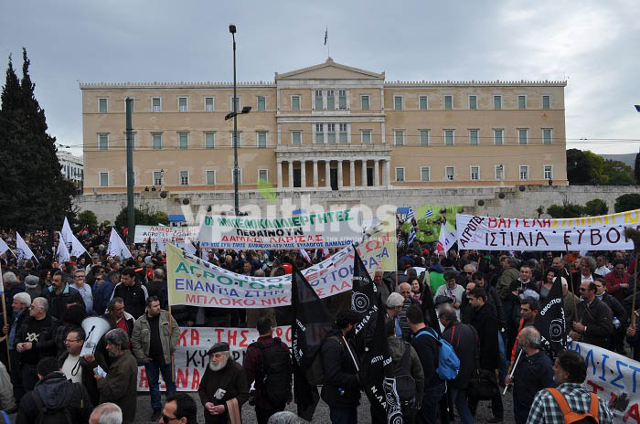 Χιλιάδες κόσμου (αγρότες και εργάτες) συγκεντρώθηκαν και το Σάββατο 13/2 στο Σύνταγμα προκειμένου να διαδηλώσουν .