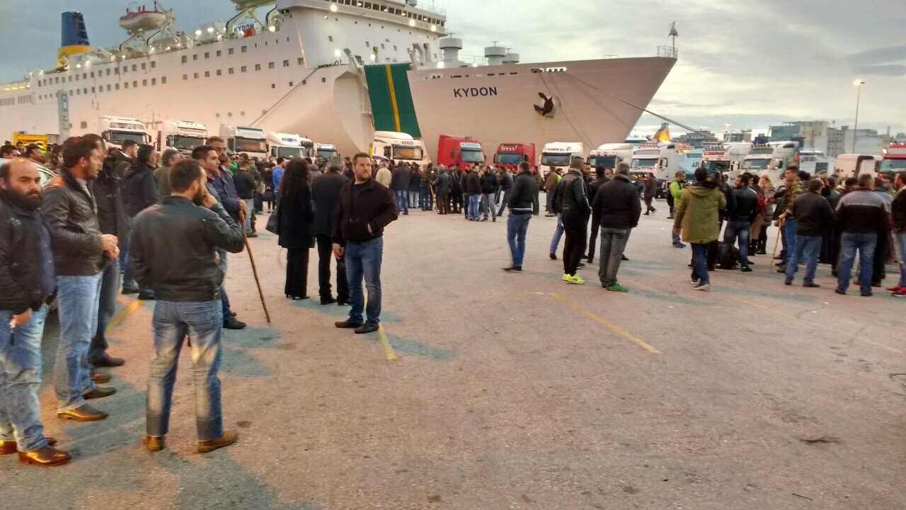 Λίγα λεπτά μετά τις 6:00 το πρωί της Παρασκευής 12/02 έφτασαν στον Πειραιά οι πρώτοι 250 περίπου αγρότες από τα Χανιά της Κρήτης προκειμένου να συμμετάσχουν στις αγροτικές κινητοποιήσεις που θα πραγματοποιηθούν στην Αθήνα. Σύμφωνα με όσα δήλωσαν στο ypaithros.gr ο αριθμός των συναδέλφων τους υπολογίζεται στους 2000 μαζί με αυτούς που επιβιβάσθηκαν στα πλοία «Κύδων» της ΑΝΕΚ και «Κνωσός Παλάς» των Μινωικών Γραμμών.