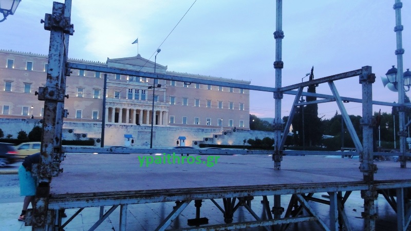 Στην πάνω πλευρά της πλατείας, απέναντι από το μνημείο του Άγνωστου Στρατιώτη, επί της λεωφόρου Αμαλίας, από τις 6 το πρωί άρχισε να στήνεται η εξέδρα από την οποία θα μιλήσουν οι εκπρόσωποι των αγροτών ενώ γνωρίζοντας τη σημασία του επικοινωνιακού παιχνιδιού έχουν φροντίσει να στηθεί και μια μικρότερη για τις τηλεοπτικές κάμερες.
