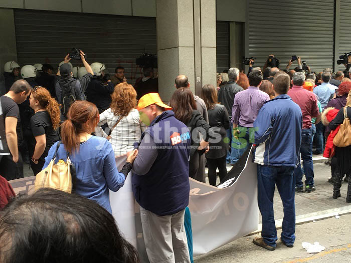 Με χημικά διέλυσαν οι αστυνομικές δυνάμεις την κινητοποίηση των εργαζομένων στα δημόσια νοσοκομεία, όταν αυτοί απαίτησαν έξω από το Υπουργείο Οικονομικών, να φύγουν τα ΜΑΤ από τη συγκέντρωση. Προηγουμένως οι εργαζόμενοι είχαν συγκεντρωθεί στο Υπουργείο Υγείας όπου διαμαρτυρήθηκαν ενάντια στα νέα ασφαλιστικά μέτρα.