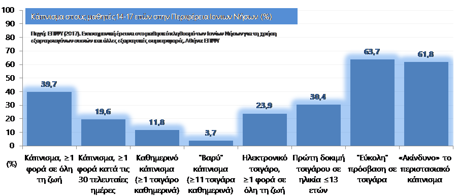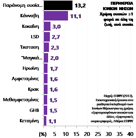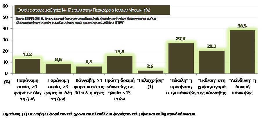 Σύμφωνα με νέα επιστημονική έρευνα (στοιχεία του 2017) που αφορά τον μαθητικό πληθυσμό των Ιονίων νήσων σχετικά με τη χρήση εξαρτησιογόνων ουσιών και άλλων εξαρτητικών συμπεριφορών (διαδίκτυο, τυχερά παιχνίδια):