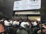 Mετά από διαπραγματεύσεις με την αστυνομία τους επέτρεψαν να κόψουν συμβολικά την κορδέλα έξω από την συνεδριακή αίθουσα Γερμανός στην οποία αργότερα θα πραγματοποιήσει τα εγκαίνια ο υπουργός.