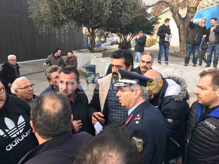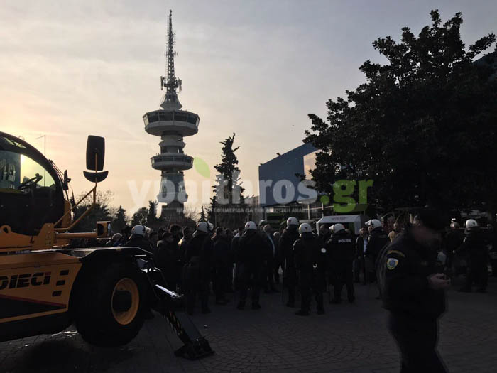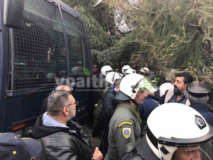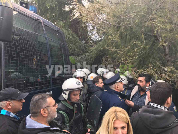 Mετά από διαπραγματεύσεις με την αστυνομία τους επέτρεψαν να κόψουν συμβολικά την κορδέλα έξω από την συνεδριακή αίθουσα Γερμανός στην οποία αργότερα θα πραγματοποιήσει τα εγκαίνια ο υπουργός.