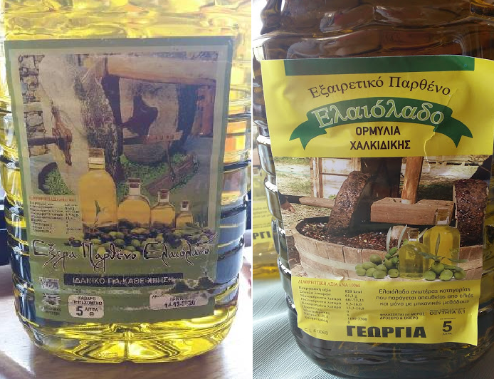 - μεγάλος αριθμός αυτοκόλλητων ετικετών με διάφορες εμπορικές ονομασίες «εξαιρετικά παρθένων ελαιολάδων»