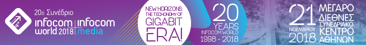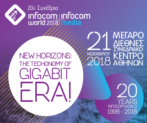 Tο InfoCom World (www.infocomworld.gr), το μεγαλύτερο συνέδριο Τηλεπικοινωνιών, Πληροφορικής & Media στη ΝΑ Ευρώπη και το ετήσιο ραντεβού των στελεχών της ψηφιακής αγοράς, συμπληρώνει φέτος 20 χρόνια παρουσίας και θα πραγματοποιηθεί στις 21 Νοεμβρίου 2018, στο Μέγαρο Μουσικής Αθηνών, υπό τον γενικό τίτλο «New Horizons: The Techonomy of Gigabit Era!»