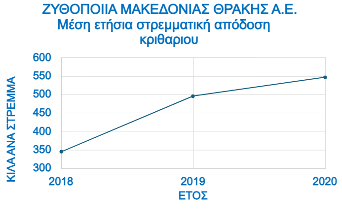 Τέλος, η εταιρία έχει καταφέρει μέσα στα χρόνια της συμβολαιακής καλλιέργειας να αυξήσει τη μέση στρεμματική απόδοση από 300kg σε 500kg ανά στρέμμα και αυτό διότι η Ζυθοποιία Μακεδονίας Θράκης υιοθέτησε βελτιωμένες μεθόδους καλλιέργειας, πιο αποδοτικές τεχνικές και επέλεξε τις καταλληλότερες ποικιλίες κριθαριού. Το κριθάρι πλέον έχει φτάσει από το 2023 να έχει και συνδεδεμένη ενίσχυση (28,4 ευρώ ανά στρέμμα) το οποίο επετεύχθη και με τη σθεναρή διαμεσολάβηση της Ζυθοποιίας Μακεδονίας Θράκης και είναι έξτρα πηγή εισροών για τον παραγωγό. Η επιλογή των ποικιλιών είναι εξαιρετικά ανθεκτικές στο μικροκλίμα της περιοχής και αυτό είναι ιδιαιτέρως ενθαρρυντικό και οδηγεί σε αυξημένη παραγωγικότητα και ποιοτικότερα προϊόντα με έμφαση στην ποιότητα και την αειφορία.