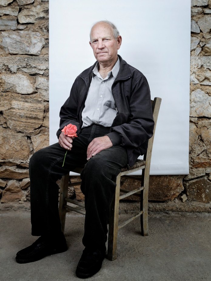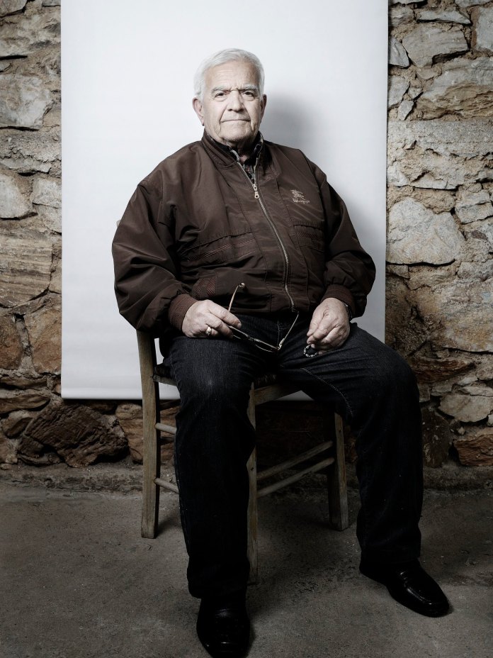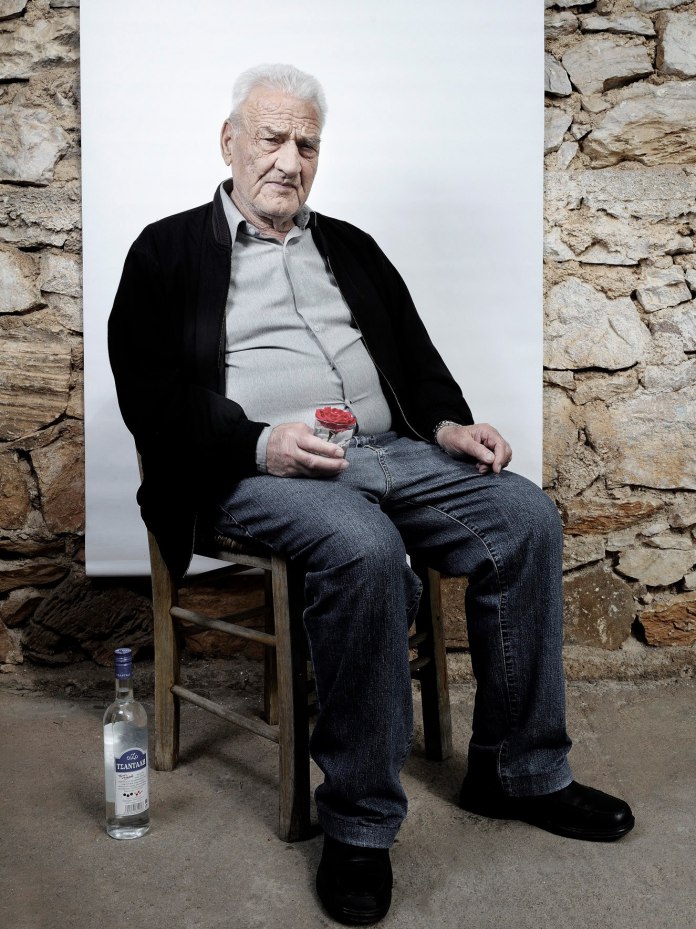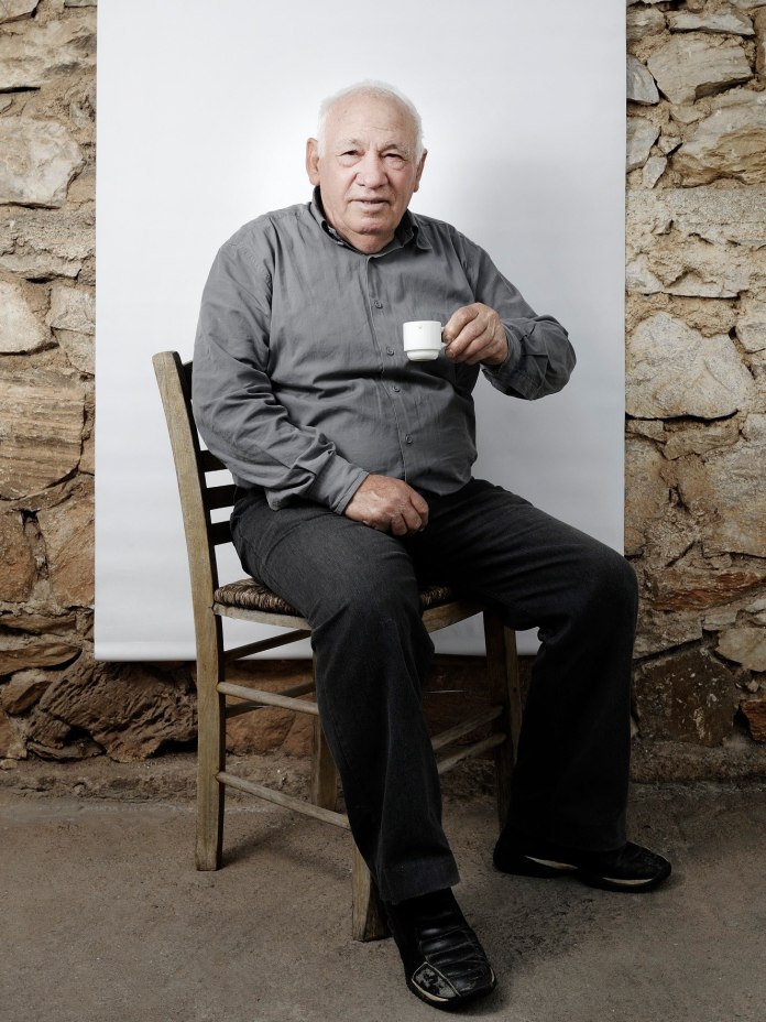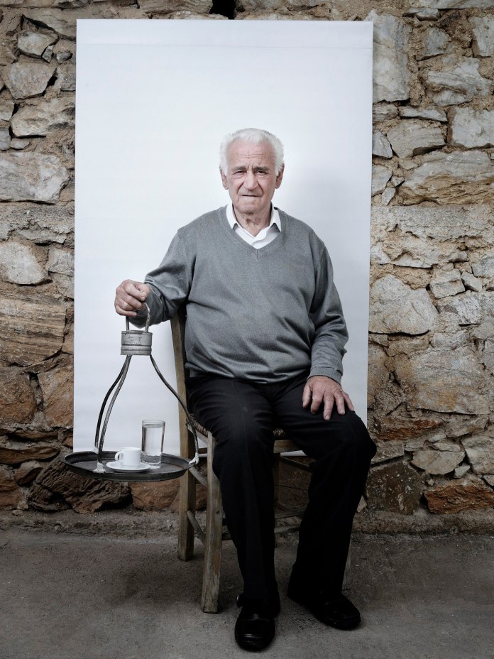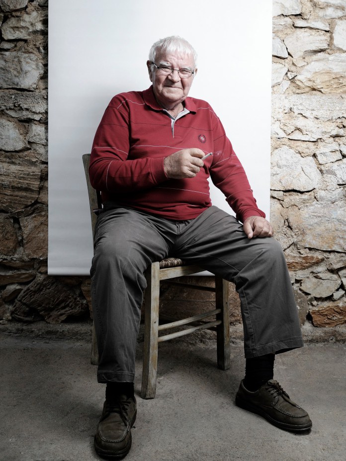 Οι άνθρωποι, Γάκης και Μαρίκα, γονείς μου, οι ιδιοκτήτες του καφενείου, μαζί με τους θαμώνες του, σχέση διαδραστική πριν ακόμα γίνει δόκιμος ο συγκεκριμένος όρος. Ζήτησα από τον κάθε φωτογραφιζόμενο μια φράση, για την θέση του καφενείου στην σκέψη του. Απέφυγα τον εσωτερικό χώρο για την φωτογράφηση, ο εξωτερικός πέτρινος τοίχος, υπάρχει αναλλοίωτος από την πρώτη μέρα της λειτουργίας του καφενείου, αποτέλεσε την βάση, τον λίθο της αφήγησης. Η τυπολογία ολοκληρώθηκε με την χρήση του λευκού φόντου, το κάθε πορτραίτο ακέραιο. Στις φωτογραφίες που προέκυψαν, δεν υπάρχει κανένας εννοιολογικός λαβύρινθος αλλά ούτε και νοσταλγικό πρόσημο. Τα πρόσωπα και οι λέξεις τους, αυτά θα περιγράψουν το καφενείο, πιθανόν να απαντήσουν σε ερωτήματα για την πορεία μου ως άνθρωπος και φωτογράφος.”