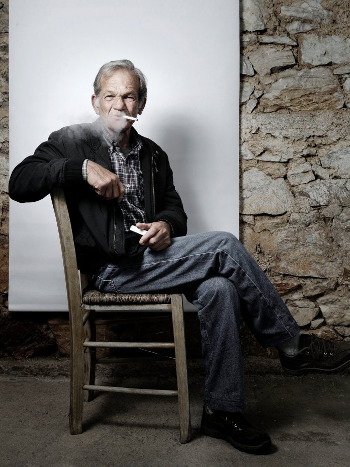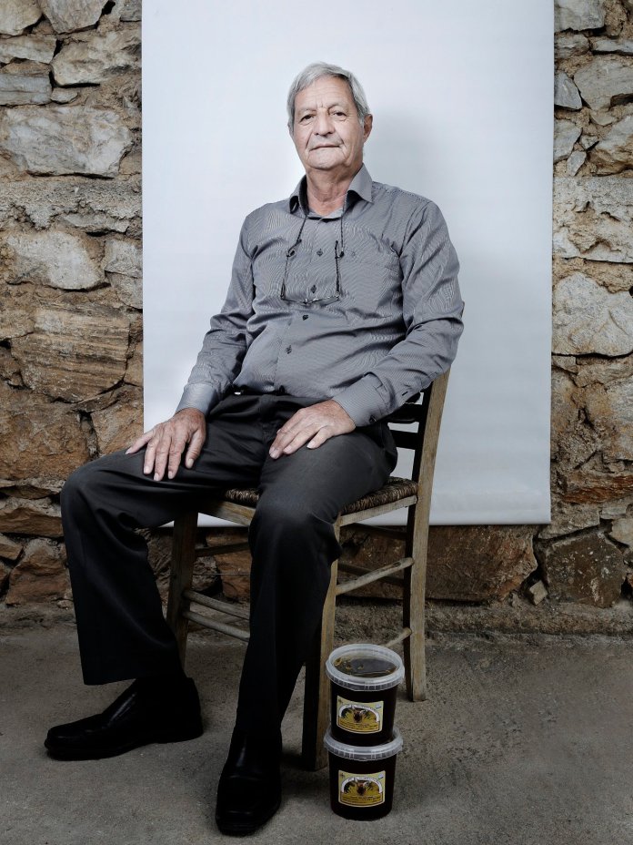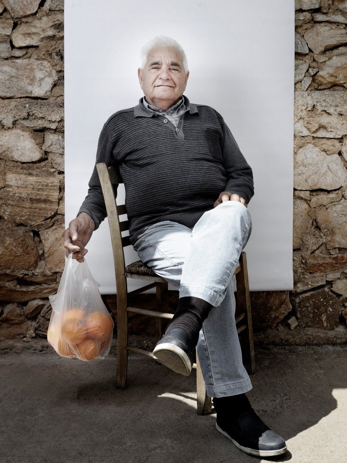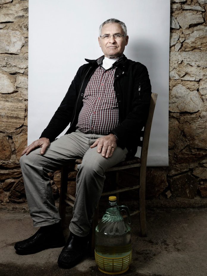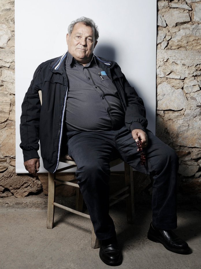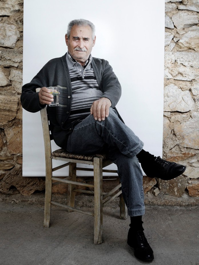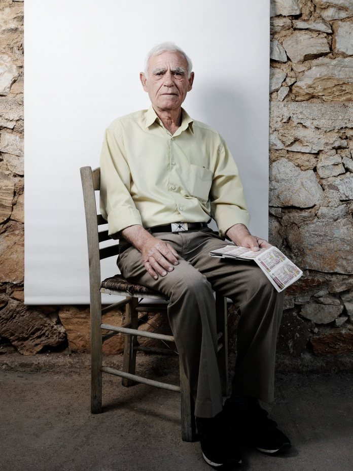 Οι άνθρωποι, Γάκης και Μαρίκα, γονείς μου, οι ιδιοκτήτες του καφενείου, μαζί με τους θαμώνες του, σχέση διαδραστική πριν ακόμα γίνει δόκιμος ο συγκεκριμένος όρος. Ζήτησα από τον κάθε φωτογραφιζόμενο μια φράση, για την θέση του καφενείου στην σκέψη του. Απέφυγα τον εσωτερικό χώρο για την φωτογράφηση, ο εξωτερικός πέτρινος τοίχος, υπάρχει αναλλοίωτος από την πρώτη μέρα της λειτουργίας του καφενείου, αποτέλεσε την βάση, τον λίθο της αφήγησης. Η τυπολογία ολοκληρώθηκε με την χρήση του λευκού φόντου, το κάθε πορτραίτο ακέραιο. Στις φωτογραφίες που προέκυψαν, δεν υπάρχει κανένας εννοιολογικός λαβύρινθος αλλά ούτε και νοσταλγικό πρόσημο. Τα πρόσωπα και οι λέξεις τους, αυτά θα περιγράψουν το καφενείο, πιθανόν να απαντήσουν σε ερωτήματα για την πορεία μου ως άνθρωπος και φωτογράφος.”