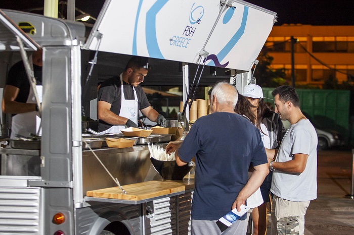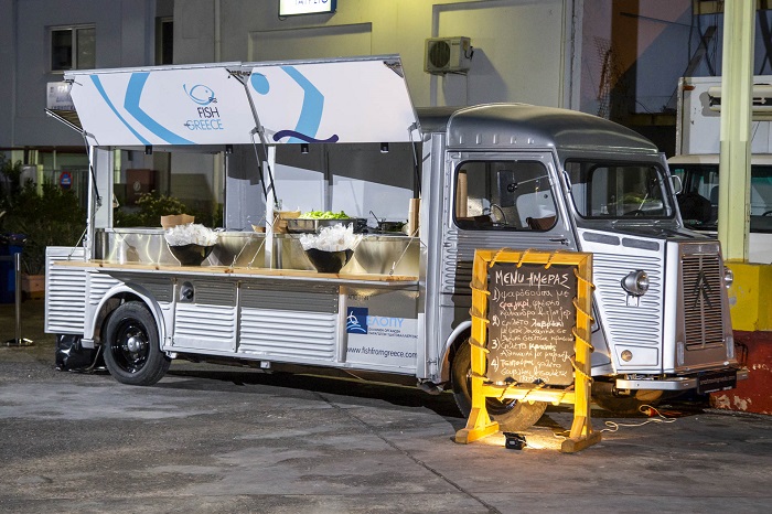 Το φορτηγάκι-καντίνα FISH FROM GREECE, απέναντι ακριβώς από την Αίθουσα Δημοπρασιών της Ιχθυόσκαλας, περίμενε τους εμπόρους, για να τους προσφέρει λαχταριστά πιάτα με πρωταγωνιστές την τσιπούρα, το λαβράκι, το φαγκρί και τον κρανιό παραγωγής εταιρειών-μελών της ΕΛ.Ο.Π.Υ., ενώ ενημερώνονταν, από την ειδικά εκπαιδευμένη προωθητική ομάδα, σχετικά με την ταυτότητα FISH FROM GREECE, τη σημασία και τους στόχους της δημιουργίας της.