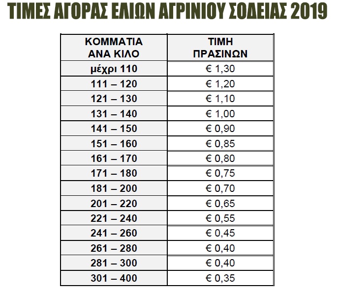 Τις τιμές για την πράσινη ελιά ανακοίνωσε ο ΑΣ Καινούργιου, ακολουθώντας τη Στυλίδα