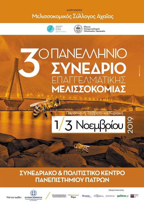 Στα μεγάλα ζητήματα του κλάδου της μελισσοκομίας αναμένεται να εστιάσει το ενδιαφέρον των εργασιών του το 3ο Πανελλήνιο Συνέδριο Επαγγελματικής Μελισσοκομίας, που θα πραγματοποιηθεί από την 1η έως τις 3 Νοεμβρίου 2019 στο Συνεδριακό Κέντρο του Πανεπιστημίου Πατρών.