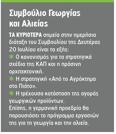 Διαβάστε αναλυτικό ρεπορτάζ για το συμβούλιο των υπουργών Γεωργίας της Ευρώπης στην «ΥΧ» που κυκλοφορεί την Παρασκευή 25 Ιουλίου