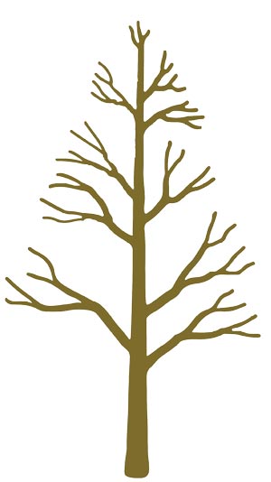Η χαρακτηριστική μορφή των δέντρων που είναι διαμορφωμένα σε «κεντρικό άξονα» θυμίζει το κλασικό σχήμα του χριστουγεννιάτικου δέντρου: κωνικό, ευρύτερο στη βάση και στενότερο στην κορυφή, με λιγότερο χώρο κάτω, όπου βρίσκονται οι μεγαλύτεροι κλάδοι, και περισσότερο χώρο πάνω. Το πλεονέκτημα του «κεντρικού άξονα» είναι ότι μας δίνει δέντρα ισχυρότερα από το κοινό σχήμα σε «ελεύθερο κύπελλο» (ή «βάζο») και επομένως μπορεί να φέρει μεγαλύτερα φορτία παραγωγής.