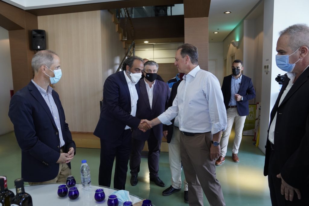Στη συνέχεια ο ΥΠΑΑΤ επισκέφθηκε την Terra Creta και ξεναγήθηκε από τον Διευθυντή της κ. Φώτη Σούσαλη στις εγκαταστάσεις του προτύπου ελαιοτριβείου ενώ εξήγησε την σύγχρονη τεχνολογικά διαδικασία παραγωγής λαδιού