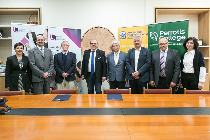 Η τελετή της υπογραφής πραγματοποιήθηκε στο campus της Αμερικανικής Γεωργικής Σχολής, κατά τη διάρκεια της οποίας οι δύο πλευρές εξέφρασαν τη χαρά και την ικανοποίησή τους από την επίτευξη του Μνημονίου Συνεργασίας. Εκτός από τους κ. Lansdale και Ευσταθόπουλο, παρόντες ήταν από την ΑΓΣ ο Dean του Perrotis College, Δρ. Κωνσταντίνος Ρότσιος, ο επικεφαλής του Τμήματος Επιστήμης και Τεχνολογίας Τροφίμων του Perrotis College, Δρ. Τρύφων Αδαμίδης και η υπεύθυνη διοικητών υπηρεσιών του Perrotis College, Σταυρούλα Αντωνοπούλου και από το Ελληνικό Ανοικτό Πανεπιστήμιο ο Κοσμήτορας της Σχολής Θετικών Επιστημών και Τεχνολογίας, Καθηγητής Ιωάννης Καλαβρουζιώτης και ο Επίκουρος Καθηγητής της Σχολής Ανθρωπιστικών Επιστημών, Γιώργος Κουλαουζίδης.