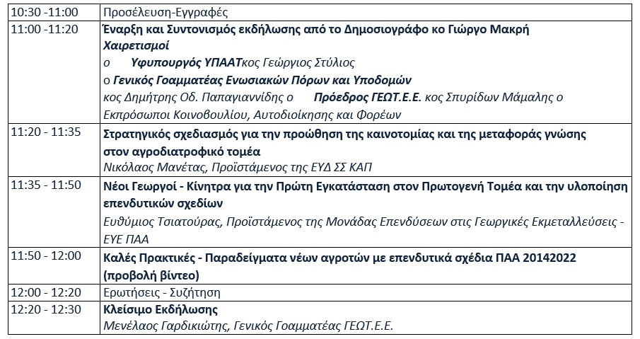 Εκδήλωση ΓΕΩΤΕΕ για νέους αγρότες και χρηματοδοτικές ευκαιρίες από το ΠΑΑ, στο πλαίσιο της Agrotica 2022 01/01