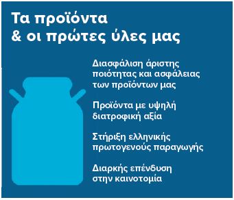 δραστηριοποιούμαστε με στόχο τη μέγιστη δυνατή προστασία του μειώνοντας στο ελάχιστο δυνατό τις επιπτώσεις από τη λειτουργία μας. Στο πλαίσιο αυτό, χρησιμοποιούμε ενέργεια από Ανανεώσιμες Πηγές, ενώ αποτελούμε την πρώτη γαλακτοκομική εταιρεία στη Νοτιοανατολική Ευρώπη που εγκατέστησε ολοκληρωμένο συγκρότημα επεξεργασίας υγρών αποβλήτων με παράλληλη παραγωγή βιοαερίου. Έχουμε υιοθετήσει τεχνολογικά προηγμένες διαδικασίες για την επαναχρησιμοποίηση νερού, με στόχο τη μείωση της κατανάλωσής του. Προχωρήσαμε στη χρήση ανακυκλωμένου ΡΕΤ (r-PET) στις συσκευασίες μας, καθώς και στην υιοθέτηση plant-based συσκευασιών για μέρος των προϊόντων μας, ενώ, παράλληλα, αναπτύξαμε πολιτική «No food waste» με στόχο τη μείωση της σπατάλης τροφίμων.