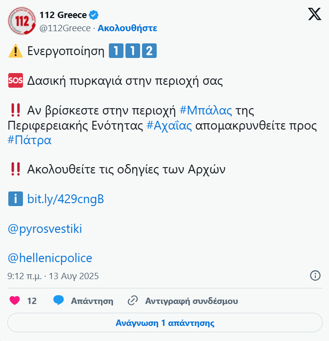 Στην ανακοίνωση υπενθυμίζεται ότι «με εντολή της Πυροσβεστικής Υπηρεσίας εξαιτίας της πυρκαγιάς στην ευρύτερη περιοχή της Πάτρας και σε κοντινή απόσταση σε τμήμα της σιδηροδρομικής γραμμής, διεκόπη η κυκλοφορία στο τμήμα Βραχνέικα-Καμίνια, μέχρι νεοτέρας.Ως εκ τούτου, οι αμαξοστοιχίες του Προαστιακού Πάτρας που εκτελούν δρομολόγια στο τμήμα ‘Αγιος Ανδρέας-Καμίνια θα τερματίζουν προσωρινά στον σταθμό Βραχνέικα, μέχρι την αποκατάσταση της κυκλοφορίας.