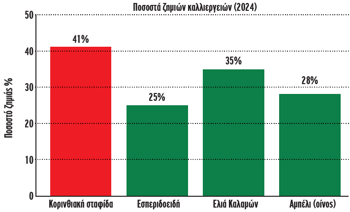 Η Κορινθιακή σταφίδα, μία καλλιέργεια ιστορικής, πολιτισμικής και οικονομικής σημασίας για τη χώρα, αντιμετωπίζει για ακόμη μία φορά σοβαρό κίνδυνο απαξίωσης. Παρά τις τεκμηριωμένες ζημιές που υπέστη το 2024, με απώλειες της τάξης του 41%, σύμφωνα με επίσημα στοιχεία της Περιφέρειας Δυτικής Ελλάδας, εξαιρέθηκε από τις ενισχύσεις του Μέτρου 23 του Προγράμματος Αγροτικής Ανάπτυξης.