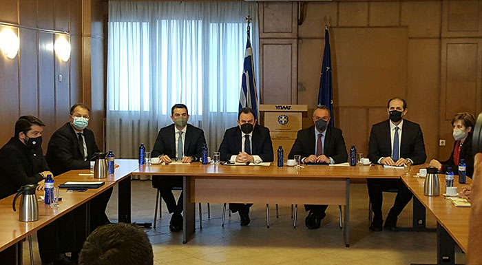 Τρίωρη σύσκεψη πραγματοποιήθηκε την Πέμπτη 24/2 στο ΥΠΑΑΤ μεταξύ των υπουργών Αγροτικής Ανάπτυξης και Τροφίμων Γ. Γεωργαντά, Περιβάλλοντος και Ενέργειας Κ. Σκρέκα και Οικονομικών Χ. Σταϊκούρα και εικοσαμελής ομάδα μελών της Πανελλαδικής Επιτροπής Μπλόκων.
