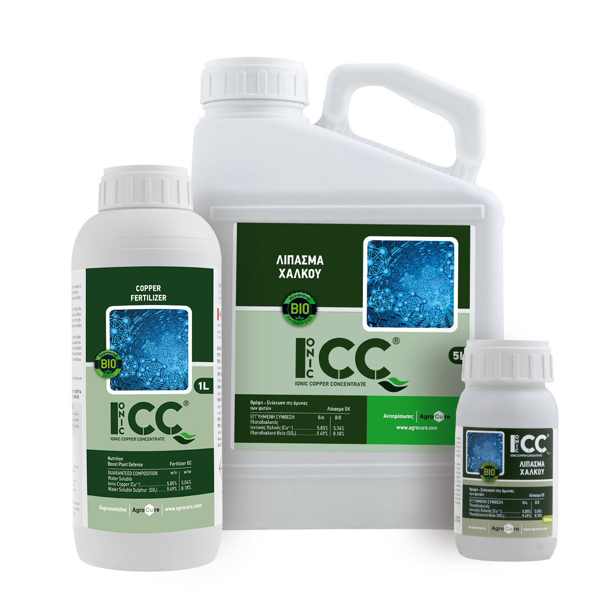 Στη φαρέτρα των προϊόντων της AgroCure συναντάμε το σκεύασμα “ICC®: Ιοντικός Χαλκός”, λίπασμα χαλκού με μοναδικές βιολογικές ιδιότητες καθώς: