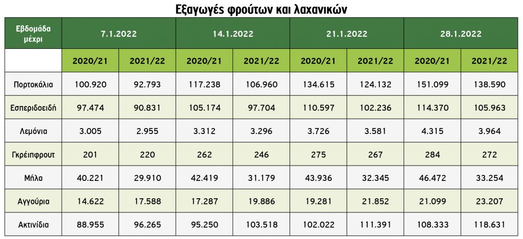 Η μειωμένη παραγωγή χειμερινών φρούτων και λαχανικών, λόγω καιρικών συνθηκών, η έλλειψη εργατικών χεριών τόσο στο στάδιο της συγκομιδής όσο και της συσκευασίας σε συνδυασμό με το κόστος στις μεταφορές οφειλόμενη τόσο σε αύξηση των καυσίμων όσο και των ναύλων των ατμοπλοικών δημιουργούν προβλήματα στην ομαλή εμπορική τους πορεία».