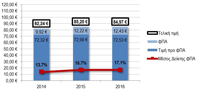 - Συνολικά για το τυπικό αυτό καλάθι, ο αναλογούν ΦΠΑ αυξήθηκε κατά 25% σε σχέση με το 2014.