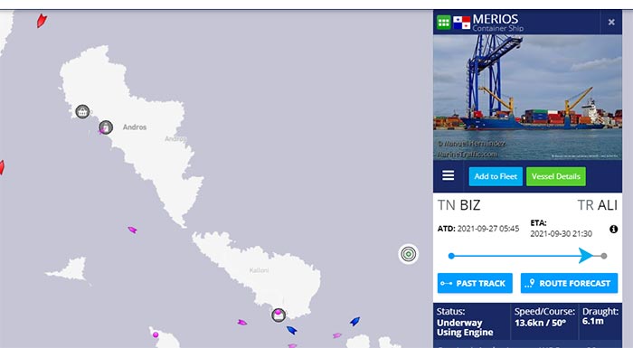 Ακυβέρνητο φορτηγό πλοίο βόρεια της Άνδρου, λόγω μηχανικής βλάβης