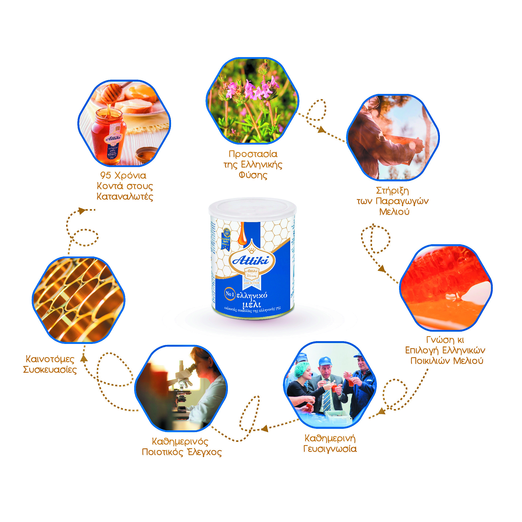 Από το 1928 μέχρι σήμερα, είμαστε προσηλωμένοι στους στόχους μας και αφοσιωμένοι στους ανθρώπους μας για να συνεχίσουμε να παράγουμε το μέλι που αγάπησε όλη η Ελλάδα. Οι μελισσοκόμοι συνεργάτες μας, σε όλη τη χώρα, συλλέγουν το μέλι και εμείς επιλέγουμε τις καλύτερες ποικιλίες. Τα εξειδικευμένα τμήματα Οργανοληπτικού και Ποιοτικού Ελέγχου της εταιρείας μας διασφαλίζουν το μέλι ως προς την ποιότητα, την προέλευση, τη γεύση, το χρώμα και το άρωμά του. Το Τμήμα Διασφάλισης Ποιότητάς μας είναι ένα από τα εγκυρότερα και παλαιότερα στην Ευρώπη.