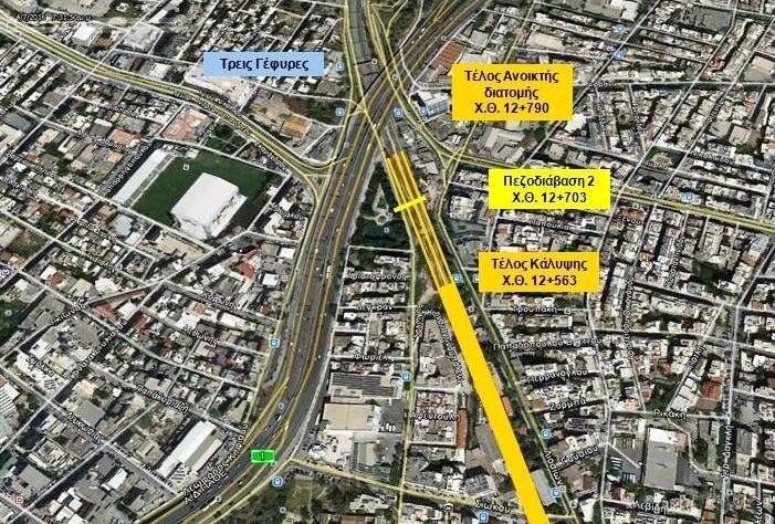Το αντικείμενο του έργου αφορά στην κατασκευή τετραπλού σιδηροδρομικού διαδρόμου, μήκους 2,36 χλμ, εκ των οποίων τα 1,91 χλμ. υποβαθμισμένου / υπογειοποιημένου, ο οποίος ξεκινά από την έξοδο του Σιδηροδρομικού Σταθμού Αθηνών προς Θεσσαλονίκη (ΧΘ 10+821) και καταλήγει στις Τρεις Γέφυρες (ΧΘ 13+181), στη περιοχή Σεπολίων του Δήμου Αθηναίων, όπου συναντά τον πρόσφατα κατασκευασμένο και σε λειτουργία νέο τετραπλό σιδηροδρομικό διάδρομο.