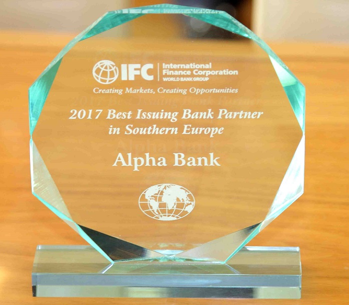Η Alpha Bank αναδείχθηκε “Best Issuing Bank Partner in Southern Europe για το 2017”από το IFC (International Finance Corporation), μέλος του Ομίλου της Παγκόσμιας