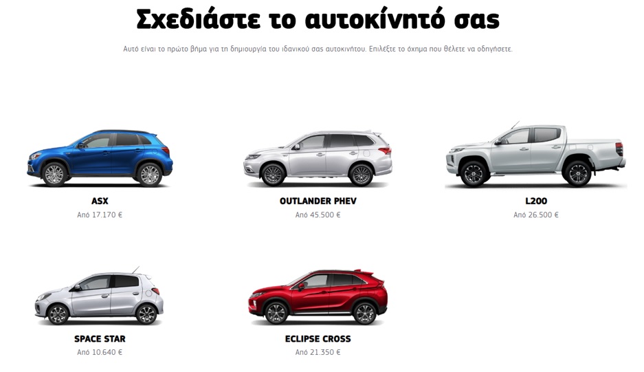 Η συγκεκριμένη λειτουργία εμφανίζει αρχικά τη σελίδα επιλογής μοντέλου και δίνει τη δυνατότητα στον υποψήφιο αγοραστή να διαμορφώσει το αυτοκίνητο που επιθυμεί: