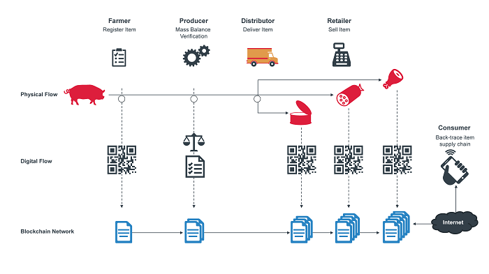 Οι εξοικειωμένοι με τη συγκεκριμένη τεχνολογία γνωρίζουν τα σχετικά, με το εικονικό νόμισμα Bitcoin και τις συναλλαγές με τα κρυπτονομίσματα. Η ίδια τεχνολογία μπορεί, όμως, να χρησιμοποιηθεί στην ιχνηλασιμότητα και τον έλεγχο του κρέατος και γενικότερα των τροφίμων ζωικής προέλευσης, δηλαδή σε μια άλλη περιοχή από τα χρηματοοικονομικά και τις συναλλαγές. Η διαφορά είναι πως τα προϊόντα ζωικής προέλευσης είναι φυσικές οντότητες, που σημαίνει ότι πρέπει να δοθούν εφαρμόσιμες λύσεις στη σύνδεση μεταξύ του πραγματικού και του ψηφιακού κόσμου. Ταυτόχρονα, πολλά προϊόντα διατροφής, στη μορφή που φτάνουν στον καταναλωτή, έχουν μικρό μέγεθος και χαμηλή σχετικά χρηματική αξία, με κίνδυνο η παρακολούθηση της κάθε συσκευασίας να γίνεται δαπανηρή, αν και η τεχνολογία επιτρέπει την ενσωμάτωση απλών υλικών και φθηνού λογισμικού.