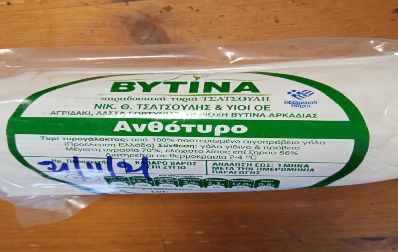 Ο Ε.Φ.Ε.Τ. και συγκεκριμένα η Περιφερειακή Διεύθυνση Πελοποννήσου, κατά τη διενέργεια ελέγχων στο πλαίσιο του Προγράμματος «Επίσημος Έλεγχος Μικροβιολογικών Κριτηρίων Ασφάλειας Τροφίμων», προέβη σε δειγματοληψία τροφίμου με τα στοιχεία: «ΑΝΘΟΤΥΡΟ», με ημερομηνία παραγωγής: 21.11.2021 και ημερομηνία ανάλωσης έως ένα μήνα μετά την ημερομηνία παραγωγής, που παράγεται από την επιχείρηση ΝΙΚΟΛΑΟΣ ΤΣΑΤΣΟΥΛΗΣ & ΥΙΟΙ Ο.Ε. Το δείγμα εξετάστηκε από τα Εργαστήρια, Δοκιμών και Ερευνών Τροφίμων Αθήνας