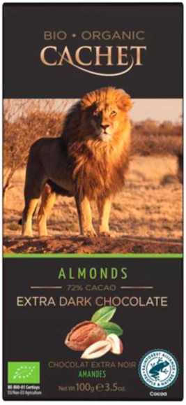 Α) «ΣΟΚΟΛΑΤΑ ΜΑΥΡΗ ΑΜΥΓΔΑΛΟ 72% ΚΑΚΑΟ» με εμπορική ονομασία «CACHET» σε συσκευασία των 100g, με αριθμό παρτίδας 22343 και ημερομηνία ελάχιστης διατηρησιμότητας 09/03/2024 με ενδεικτική φωτογραφία: