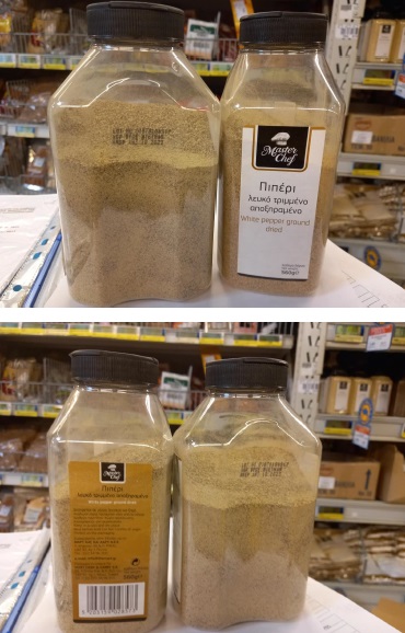 Συγκεκριμένα, πρόκειται για το προϊόν «πιπέρι λευκό τριμμένο αποξηραμένο» με την εμπορική ονομασία «Master Chef» σε πλαστική κλειστή συσκευασία 560 γρ, με αριθμό παρτίδας 01878106317 και ανάλωση κατά προτίμηση πριν από: 10/2023, το οποίο συσκευάζεται στην Ελλάδα για την ΜΑΡΤ ΚΑΣ και ΚΑΡΥ Α.Ε.Ε., Λ. Κηφισού 98 και Π. Ράλλη, ΤΚ 18233, Αγ. Ι. Ρέντης, από την ΒΑΣΙΛΕΙΟΣ ΔΙΑΜΑΝΤΟΠΟΥΛΟΣ Α.Β.Ε. «ΗΛΙΟΣ ΜΠΑΧΑΡΙΚΑ», Αγ. Ι. Ρέντη 157 και Αιτωλοακαρνανίας 1, ΤΚ 18541 Πειραιάς.