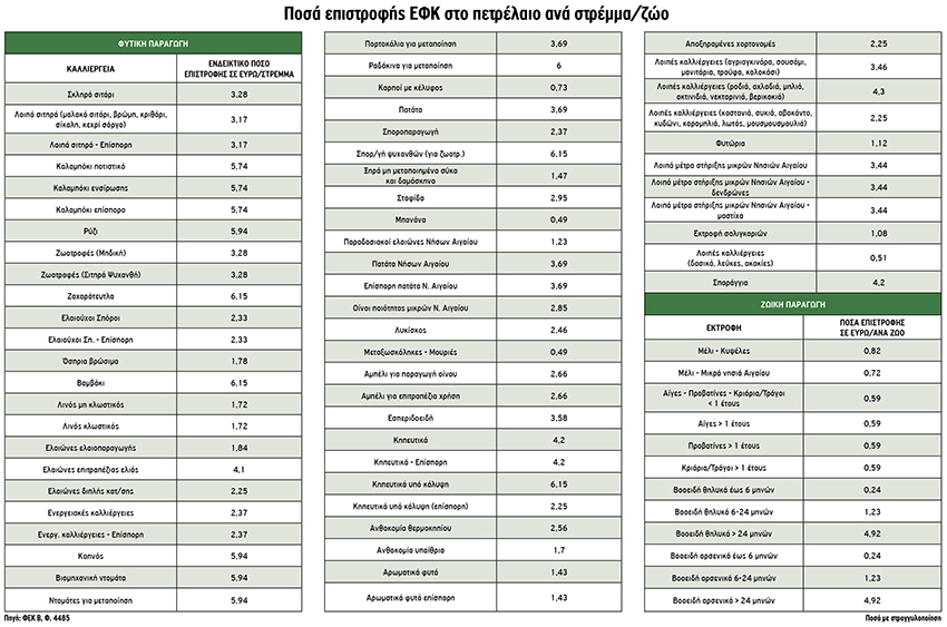 Αναλυτικός κατάλογος επιστροφής του ΕΦΚ στο πετρέλαιο ανά προϊόν και εκτροφή