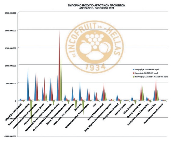 Εάν αντιμετωπιστούν τα θέματα αθέμιτου ανταγωνισμού με την υποτιμολόγηση από «Βαλκάνιους και Έλληνες εμπόρους, αλλά και Ιταλούς», τότε το πλεόνασμα του ισοζυγίου αγροτικών προϊόντων 361,73 εκατ. ευρώ του δεκαμήνου 2021 θα σταθεροποιηθεί μόνο από την πραγματική απεικόνιση των εξαγόμενων νωπών οπωροκηπευτικών μας προϊόντων.