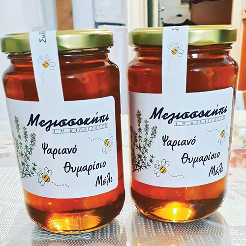 «Εκτός από το θυμαρίσιο μέλι που παράγω κάνοντας στατική μελισσοκομία στο νησί, παράγω πρόπολη και κάνω βάμμα πρόπολης, καθώς και κεραλοιφές από το κερί. Εκτός, όμως, από αυτά, φτιάχνω πετιμέζι από μέλι και μελοκουρκούτα, δύο παραδοσιακά προϊόντα του νησιού που δημιουργούνται από τα υποπροϊόντα από τον τρύγο του μελιού. Στην ουσία, το κερί από το άνοιγμα των κερηθρών περιέχει και αυτό μία ποσότητα μελιού.