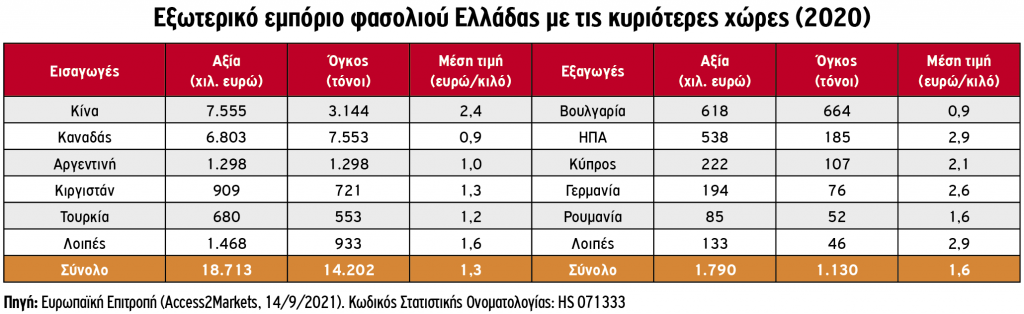 Οι εξαγωγές, παρά την άνοδό τους, βρίσκονται σε απόσταση από τα μεγέθη των εισαγωγών. Σημειώνεται, πάντως, ότι το 2020 οι εξαγωγές οσπρίων της χώρας αυξήθηκαν, εκτιμώμενες σε 4.066 τόνους (+22%), αξίας 5,3 εκατ. ευρώ (+25%), με τα φασόλια και τις φακές να καλύπτουν το μεγαλύτερο μέρος.