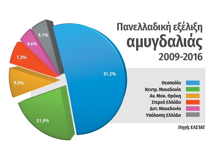 Στο μισό η παραγωγή αμυγδάλου της Θεσσαλίας