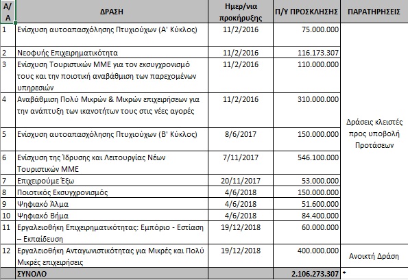 Ακολουθεί σχετικός πίνακας με τις 12 δράσεις επιχειρηματικότητας του ΕΠΑνΕΚ που τροποποιούνται