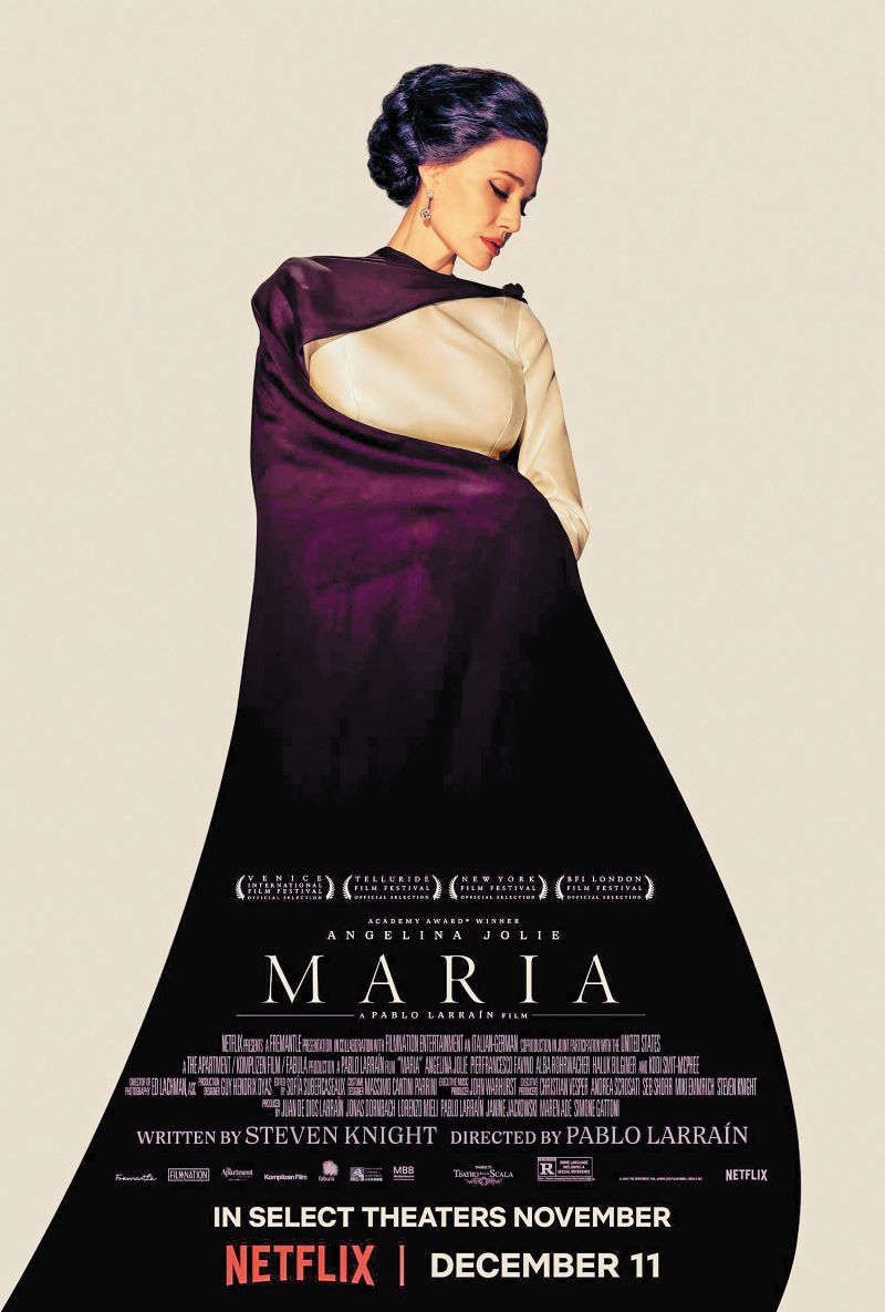 Έκτοτε, μεσολάβησαν άλλα δύο biopics, τα οποία στάθηκαν –τηρουμένων των αναλογιών– στο ύψος εκείνης της αναζωογονητικά καινοτόμου βιογραφικής μυθιστορίας. Εκεί, ο Λαραΐν βιογράφησε κατά σειρά τις Τζάκι Κένεντι («Jackie») και πριγκίπισσα Νταϊάνα («Spencer»). Το «Maria» ήρθε στο τέλος της περασμένης χρονιάς, μοιάζοντας σαν ολοκλήρωση αυτής της άτυπης βιογραφικής τριλογίας πάνω σε γυναίκες που σημάδεψαν ανεξίτηλα με την παρουσία τους τον περασμένο αιώνα.
