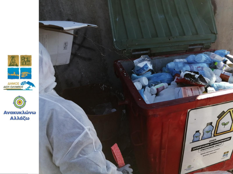 Ο Δήμος Δίου-Ολύμπου, σε συνεργασία με τη συμβεβλημένη εταιρεία POLYECO, περνάει στην επόμενη φάση της ολοκληρωμένης διαχείρισης και ανακύκλωσης κενών πλαστικών συσκευασιών φυτοφαρμάκων, που χαρακτηρίζονται ως επικίνδυνα απόβλητα, με στόχο να σταματήσει η ανεξέλεγκτη απόρριψή τους στο περιβάλλον, με τεράστιες και μακροχρόνιες δυσμενείς επιπτώσεις.